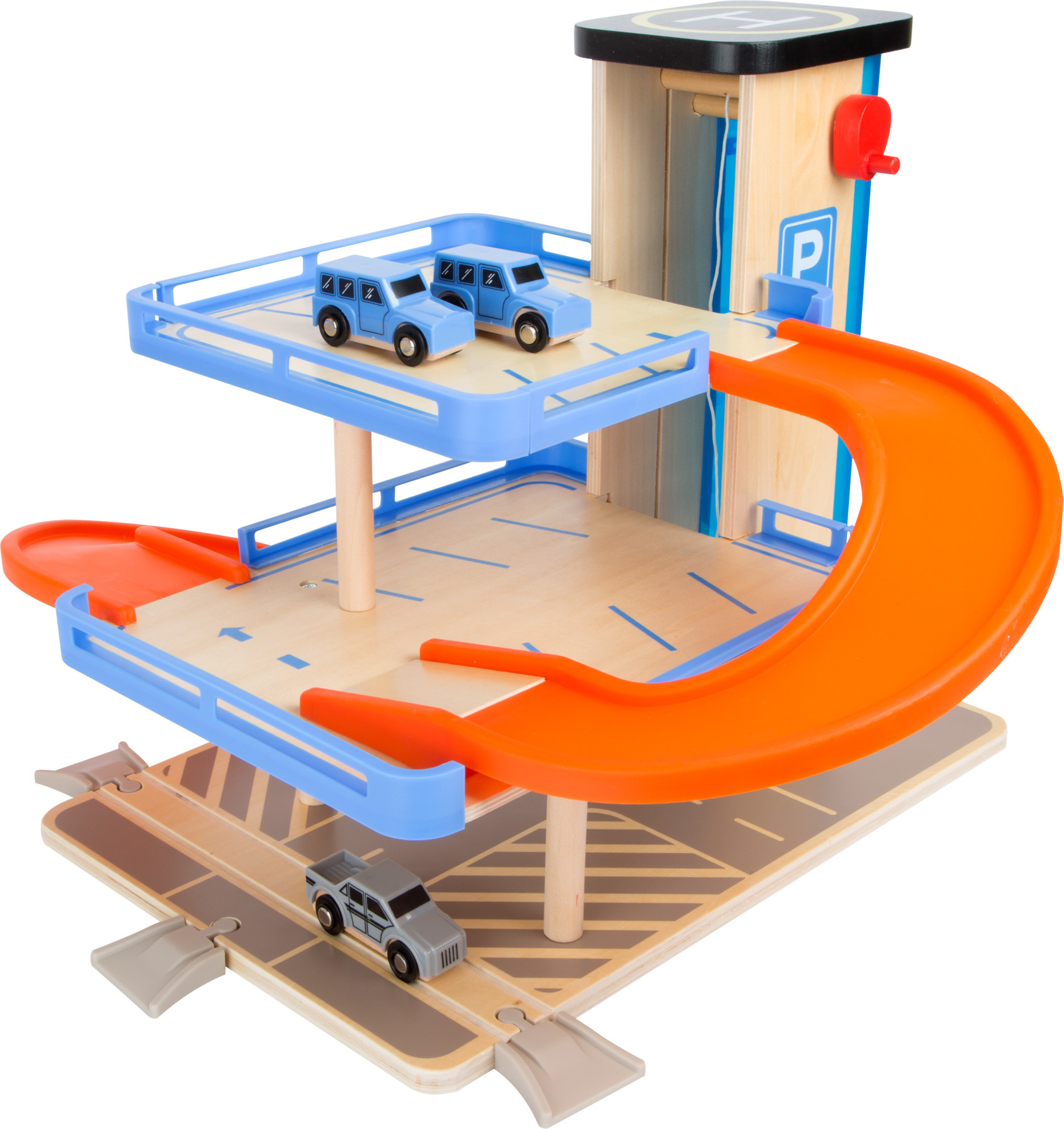 Dřevěná patrová garáž s výtahem a dvěmi autíčky. Německá firma Legler zaměřená na výrobu kvalitních dřevěných hraček od roku 1996. Všechny dřevěné hračky značky small foot mají označení CE a jsou vyráběny dle evropské normy pro bezpečnost hraček EN 71. Použité barvy jsou speciálně vyvinuty pro dřevěné hračky a jsou odolné i proti slinám dětí. Dřevo, které se používá pro tyto hračky, většinou pochází z lesnických společností zapojených do zalesňování. To nabízí všem zákazníkům možnost přispět k zachování přirozeně rostoucích lesů. Dřevěné hračky small foot jsou zářivě barevné produkty, které jsou vyrobeny převážně z přírodních surovin - dřeva. Dětem dělají radost od útlého věku, rozvíjí jejich hmatové a smyslové dovednosti. Cílem značky small foot je podporovat duševní a fyzický vývoj dětí.