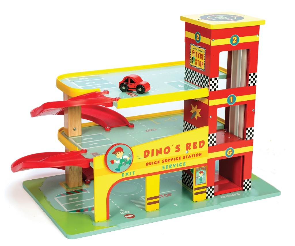 Pevná třípatrová ručně malovaná garáž Dino\'s Red s funkčním výtahem, heliportem a dvěmi sjezdovými rampami. Balení obsahuje 1 ks autíčka a samolepky. Britská značka Le Toy Van výrábí tradiční, vysoce kvalitní, prémiové dřevěné hračky v moderním designu. Kvalitu hraček zajišťuje pečlivý výběr přírodních materiálů a vyjímečné detailní zpracování. Le Toy Van hračky jsou ručně malované. Inspirována dětskou představivostí je společnost Le Toy Van hrdá na to, že navrhuje inovativní hračky, které podporují plnohodnotný rozvoj dětí. Společnost Le Toy Van byla založena v roce 1995 v anglickém Surrey, jako rodinná firma. Zakladaleli byli Georges Le Van a jeho syn Steven Le Van, kteři jsou pokračovateli rodinné společnosti s více než 150 letou historií a zkušenostmi v ruční výrobě dřevěných hraček. Během posledních 25 let se společnost Le Toy Van stala důvěryhodným výrobcem dřevěných hraček. Oceněné hračky se nyní prodávají ve více než 50 zemích světa. Všechny hračky splňují nejpřísnější bezpečnostní normy ICTI, ISO 9001, EN-71 a ASTM.