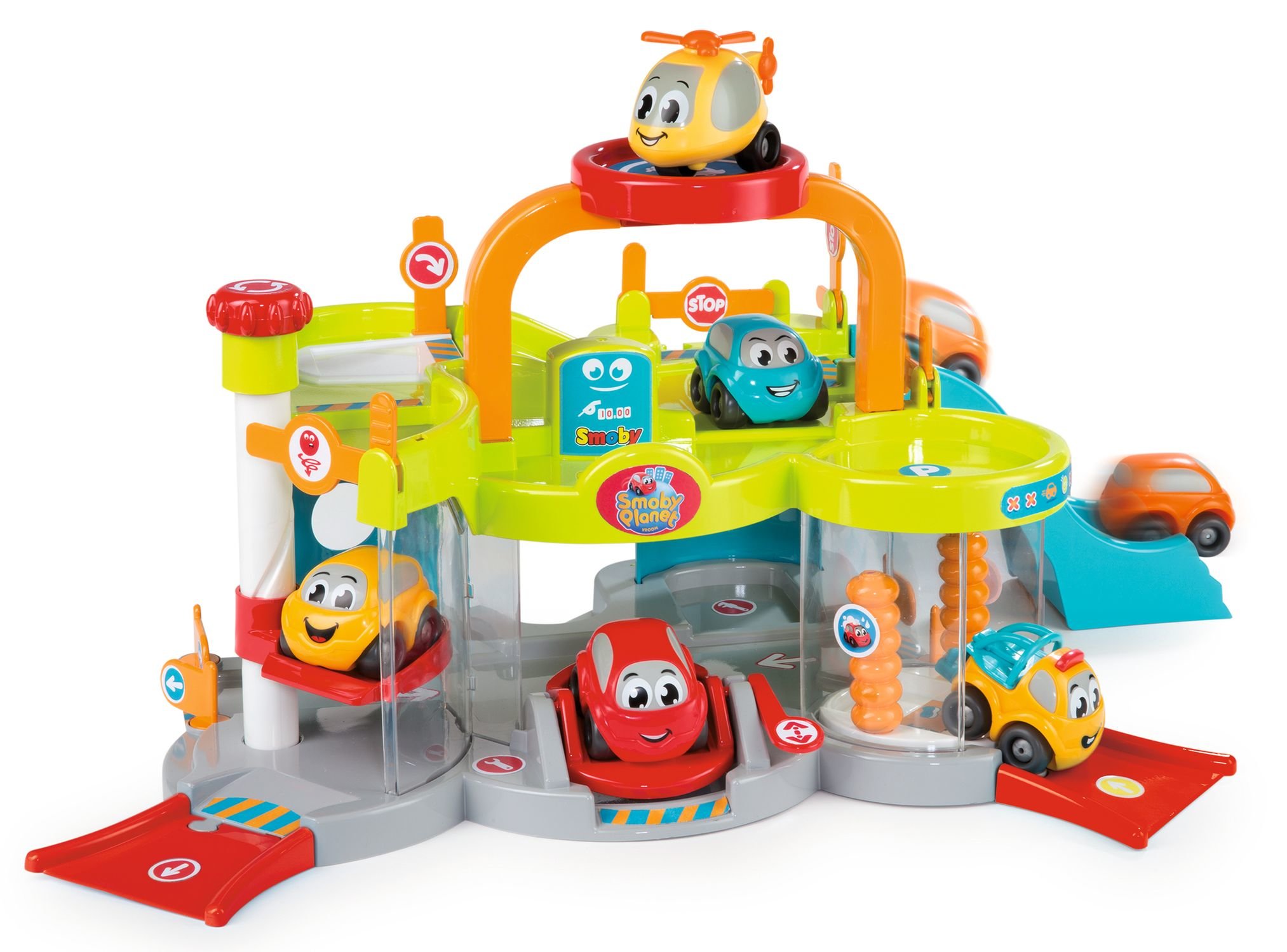Garáž z oblíbené řady Vroom Planet pro nejmenší má dvě patra, myčku, heliport a manuálně ovládaný výtah. Autíčko a helikoptéra součástí. Rozměry garáže: 56 x 32 x 29 cm.