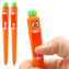 Gelové pero ve tvaru čerstvé mrkvičky s otevřenými ústy a vyplazeným jazykem.
