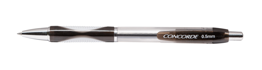 Gelové pero se stiskacím mechanismem a gumovým úchopem. Jednorázové. Průhledné tělo pro optickou kontrolu stavu náplně. Hrot 0,5 mm.