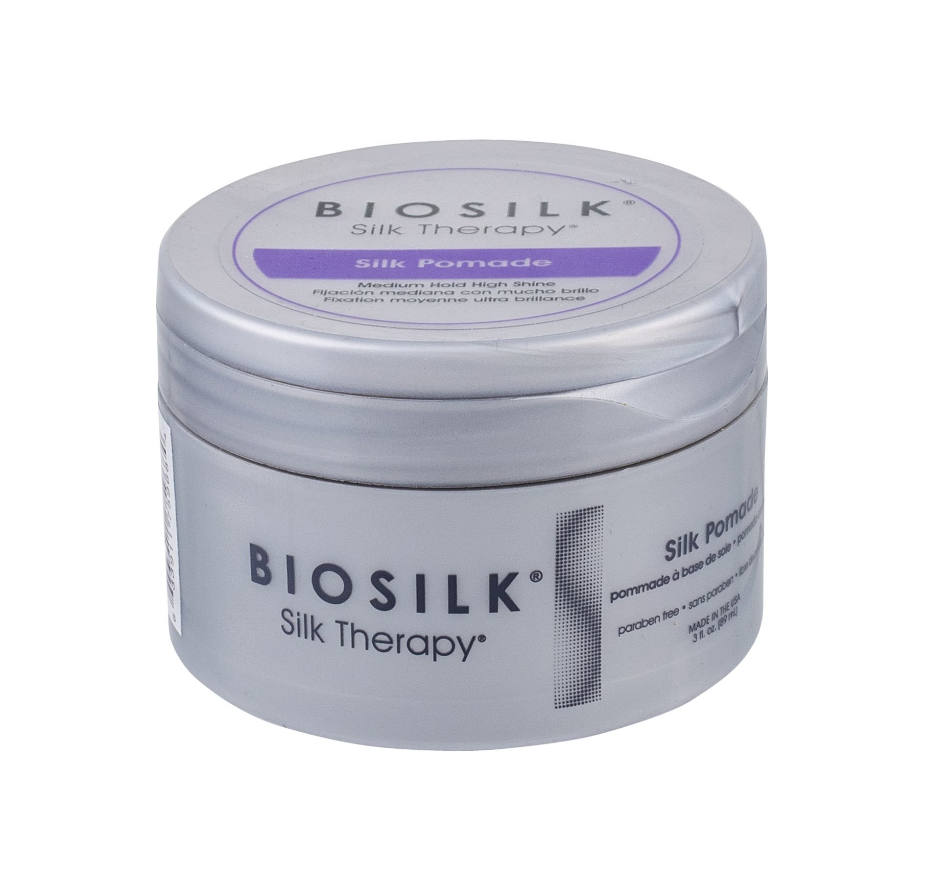 Vlasová pomáda bez parabenů **Farouk Systems Biosilk Silk Therapy Silk Pomade.** Pomáda poskytuje účesu střední fixaci. Lehké složení vlasy neslepuje a nezatěžuje. Ideální pro vytvoření hladkých účesů s mokrým efektem. S vlasovou pomádou Biosilk Silk Therapy Silk Pomade bude Váš účes hladký, pevný a lesklý. **Použití:** Aplikujte na suché vlasy.