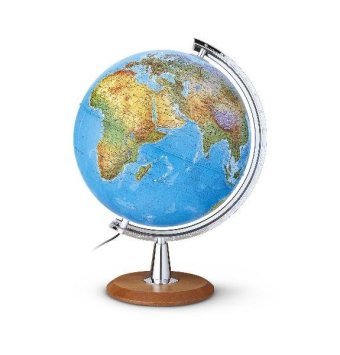 Doppelbild-Leuchtglobus, kirschbaumfarbener Holzfuß u. Kunststoffmeridian verchromt (DP 40-29)
