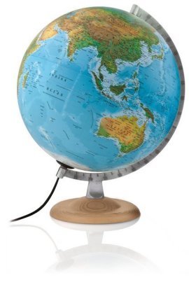 Doppelbild-Leuchtglobus Atmosphere B4 silver, Holzfuß aus klar lackierter Buche u. silberfarben lackierter Metallmeridian (německy)