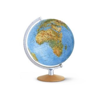 FRI 3017 Doppelbild-Leuchtglobus, unbeleuchtet physisch mit Satellitendaten erstellte Kartografie/ beleuchtet politisch, fühlbares Oberflächen-Relief, 30 cm Durchmesser, Echtholzfuß buche natur, skalierter Metallmeridian silberfarben, Kabel im Meridian integriert und mit schwarzem Schnurschalter...