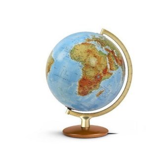Leuchtglobus, kirschbaumfarbener Holzfuß u. goldfarbener Metallmeridian (DFI 30-15)