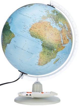 Parlamondo II, Interaktiver Globus mit TING-Hörstift, 30 cm Durchm., Doppelbild-Kartogafie physisch/politisch, Kunststoffgestell weiß, mit Ablageschale für den Stift. Zuleitung mit Schnurschalter, LED-Leuchtmittel im Lieferumfang enthalten.