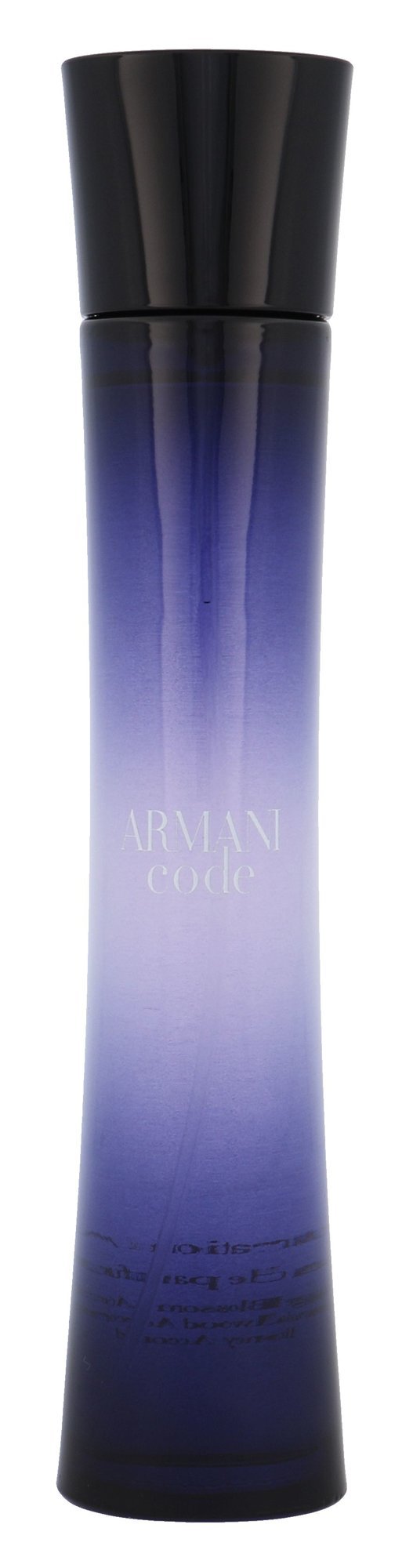 **Code** je jednoduchá, svůdná a okouzlující. Krásná vůně Giorgio Armani Code evokující stejnou eleganci jako šaty od Armaniho. *Parfém Giorgio Armani Code* se točí kolem pomerančového květu: zázraku přírody, esence ženskosti. V unikátní kompozici vyniká celá krása a magie pomerančového květu v objetí madagaskarské vanilky a medového nádechu.