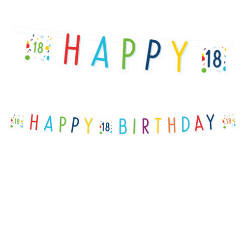 Party nápis Rainbow Confetti - Happy Birthday 18 - 180 x 14 cm