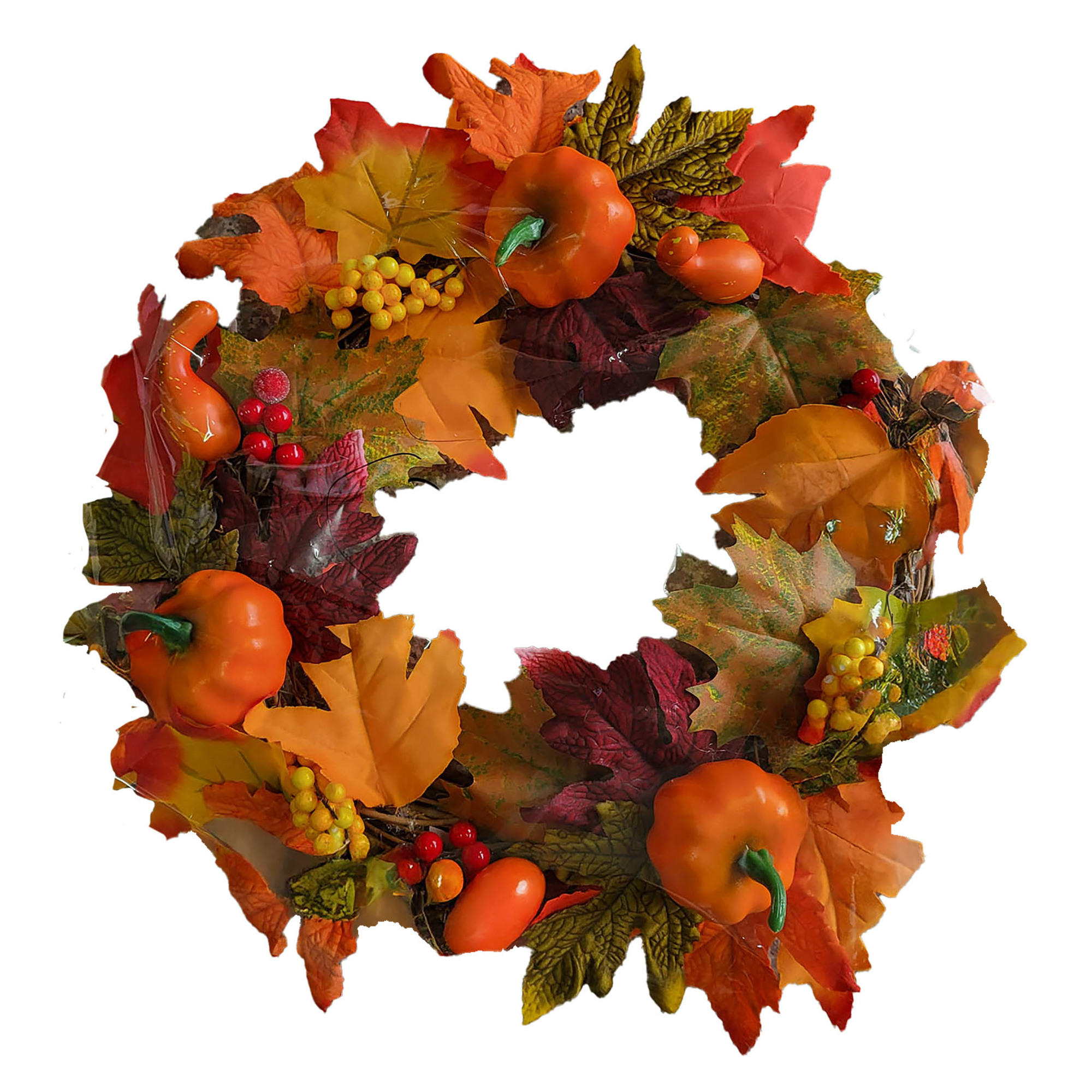 Krásný dekorativní věnec v teplých podzimních barvách s dýněmi a listím. Skvěle ozdobí dveře, stěnu nebo stůl a navodí útulnou podzimní atmosféru.Barva: Oranžová Průměr: 40 cm Výška: 10 cm