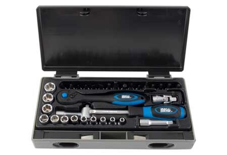 Profi GOLA sada 38 dílů, 1/4"RÁČNA: 1/4"OŘECHY 1/4": 4 5 5,5 6 7 8 9 10 12 13BITY:- PZ: 1 2- PH: 1 2 3- TX: 8 10 15 25 27 30- IMBUS: 4 5 6- PL: 5,5 7RUKOJEŤ S NÁSTAVCEM: 1/4"T NÁSTAVEC: 1/4"KARDAN: 1/4"PRODLOUŽENÍ: 50
