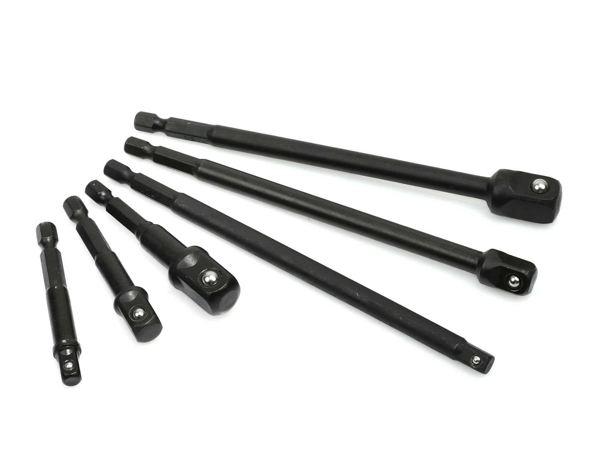 Praktická 6dílná sada HEX prodloužení. Nástavce jsou opatřeny kuličkovým zámkem na straně uzávěru.