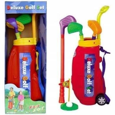 W ZESTAWIE: WÓZEK/PLECAK, 3 KILJE DO GRY W GOLFA, 4 PIŁECZKI, DOŁEK, CHORĄGIEWKA, WYM. OPK: 24,5 X 65 X 14,5 CM., 3+