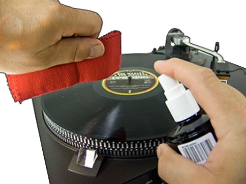 Čistící sprej a antistatická utěrka na vinylové desky. Obsah spreje 200 ml.