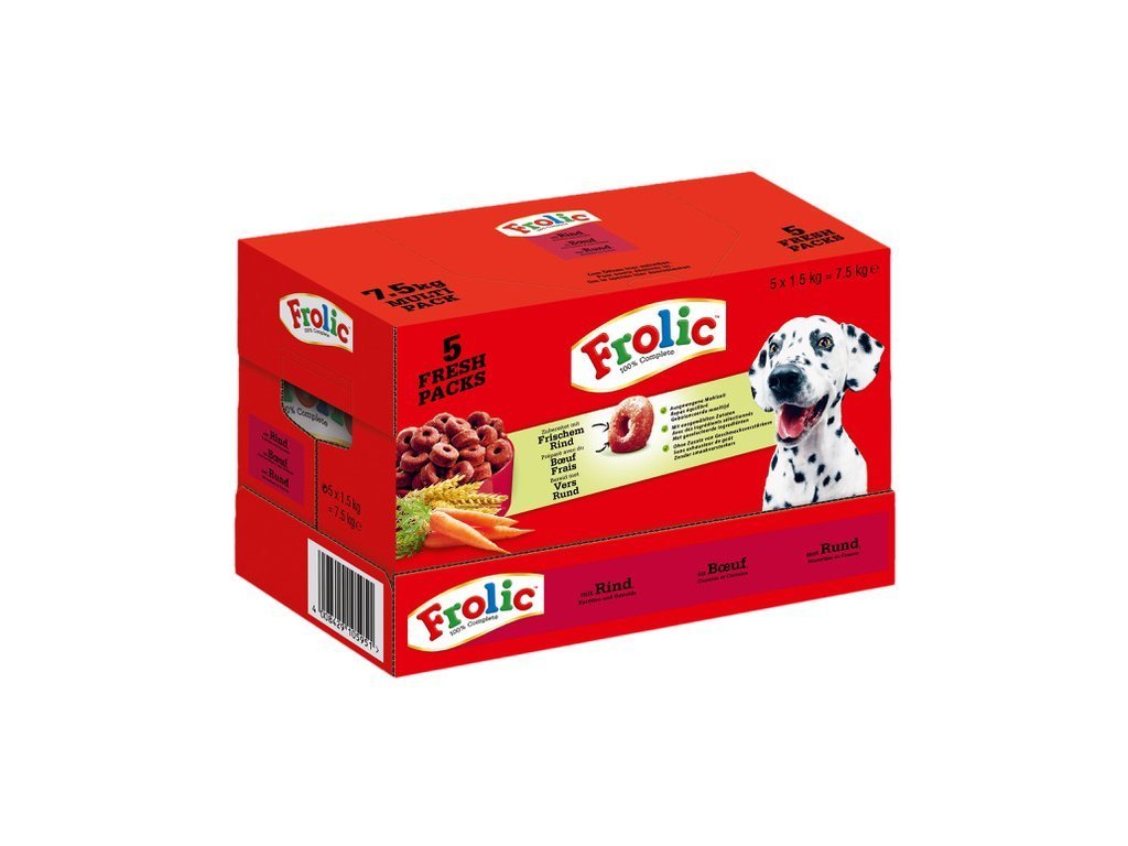 Kompletní polovlhké krmivo pro dospělé psy. Skvělá chuť masa, zeleniny a cereálií zaručuje, že Frolic je chutné a vyvážené krmivo.