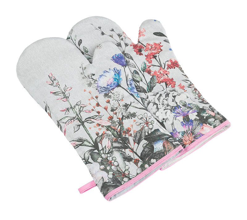 Grilovací rukavice 2ks - kvítí fialová, šedá - 20x36 cm