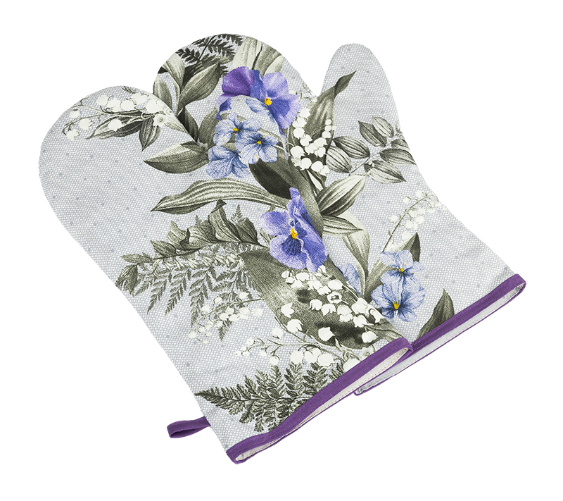 Grilovací rukavice 2ks - macešky - fialová, šedá - 20x36 cm