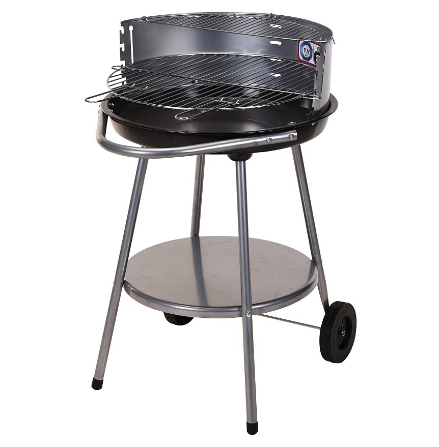 BBQ ROUND DIA 51XH82CM, COOKING HEIGHT 65 UNTILL 75CM , FIREBOWL THICKNESS 0,8MM, ENAMELED FIRE BOWL, WITH 4 LEGS DIA 22X0,4MM (2 WITH WHEELS), 1 ROUND COOKING GRILL AND 1 HALF ROUND COOKING GRILL, WINDSCREEN H175X0,7MM, TUBE HANDBAR 22X0,4MM, ALL SILVER COLOUR WITH BLACK COLOUR FIREBOWL AND BLACK WHEELS, EACH IN COLOUR BOX,ARTWORK VAGGAN, GS/TUV/ 536X124X542MM, Colour Box / CFT 1,29,(2.072/40ft HQ)
