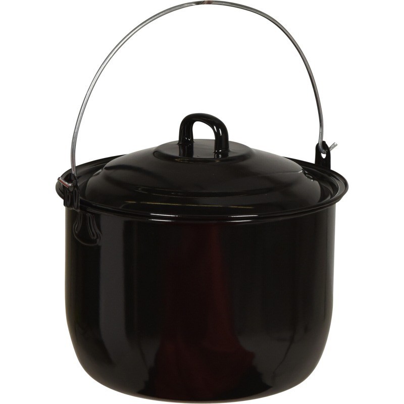 smaltovaný hrnec s poklicí v černé barvě, uhlíková ocel 0,6 mm, průměr 24 cm, obsah 6,7 litru, hmotnost mísy 850 gramů, hmotnost poklice 275 gramů, umělecké dílo ambiance, každý s visačkou číst celé