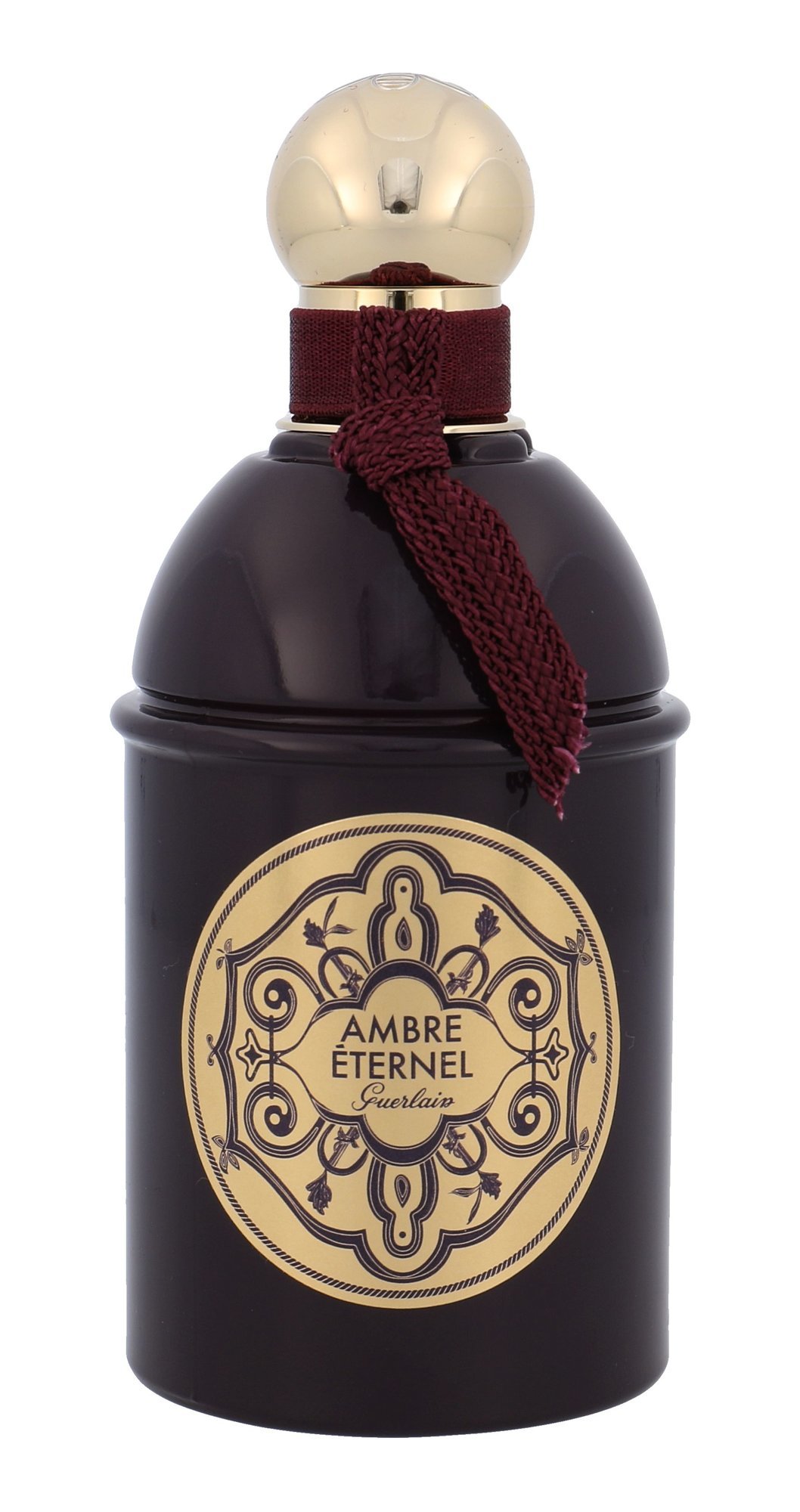 Orientální, dřevitá vůně pro muže i ženy **Guerlain Ambre Eternel**. V bohaté kompozici se mísí intenzivní akordy kůže, kardamomu s jemnými tóny květu pomerančovníku a broskve. Vůně byla na trh uvedena v roce 2016.