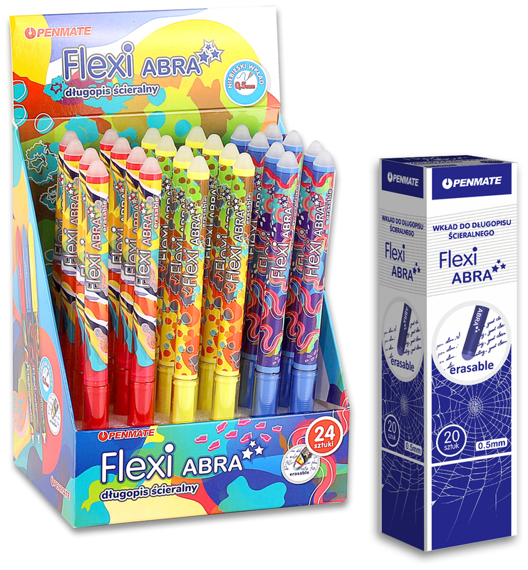 Zestaw promocyjny Długopisów ścieralnych Flexi Abra Ombre 24 szt. + 20 szt wkładów, Penmate