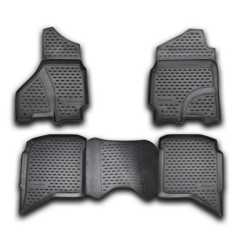Gumové autokoberce Novline pro vůz Dodge Ram 1500/2500/3500 Crew cab mají zvýšený okraj (3cm) po celém obvodu a spolehlivě zabraňují pronikání nečistot do interiéru automobilu.