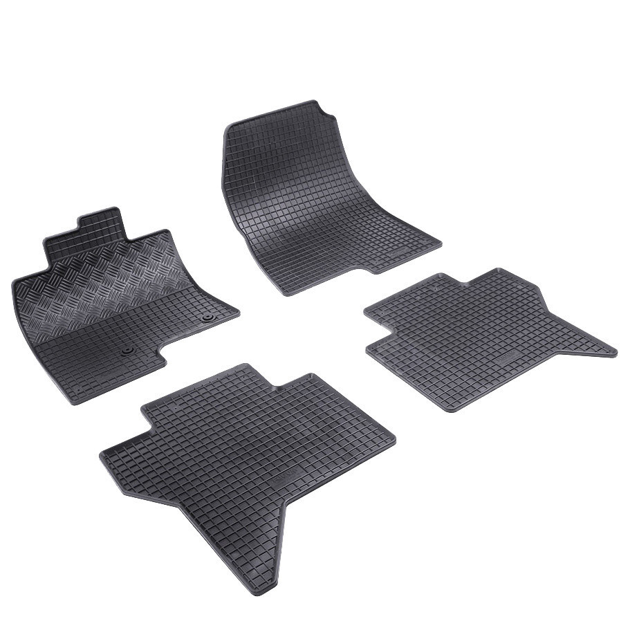 Kvalitní gumové autokoberce pro vůz Mitsubishi Pajero. Jedná se o sadu na celý vůz. Autokoberce mají tradiční (čtverčkovaný) design, díky kterému nedochází k přelévání vody, popř. tajícího sněhu po kobercích. Okraj autokoberců je přibližně 1 cm vysoký.