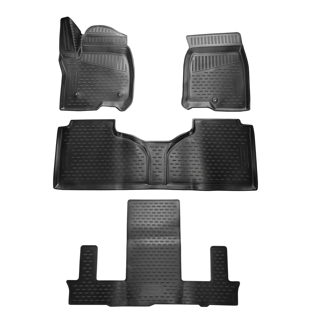 Gumové autokoberce Novline pro vůz Cadillac Escalade mají zvýšený okraj (3cm) po celém obvodu a spolehlivě zabraňují pronikání nečistot do interiéru automobilu.