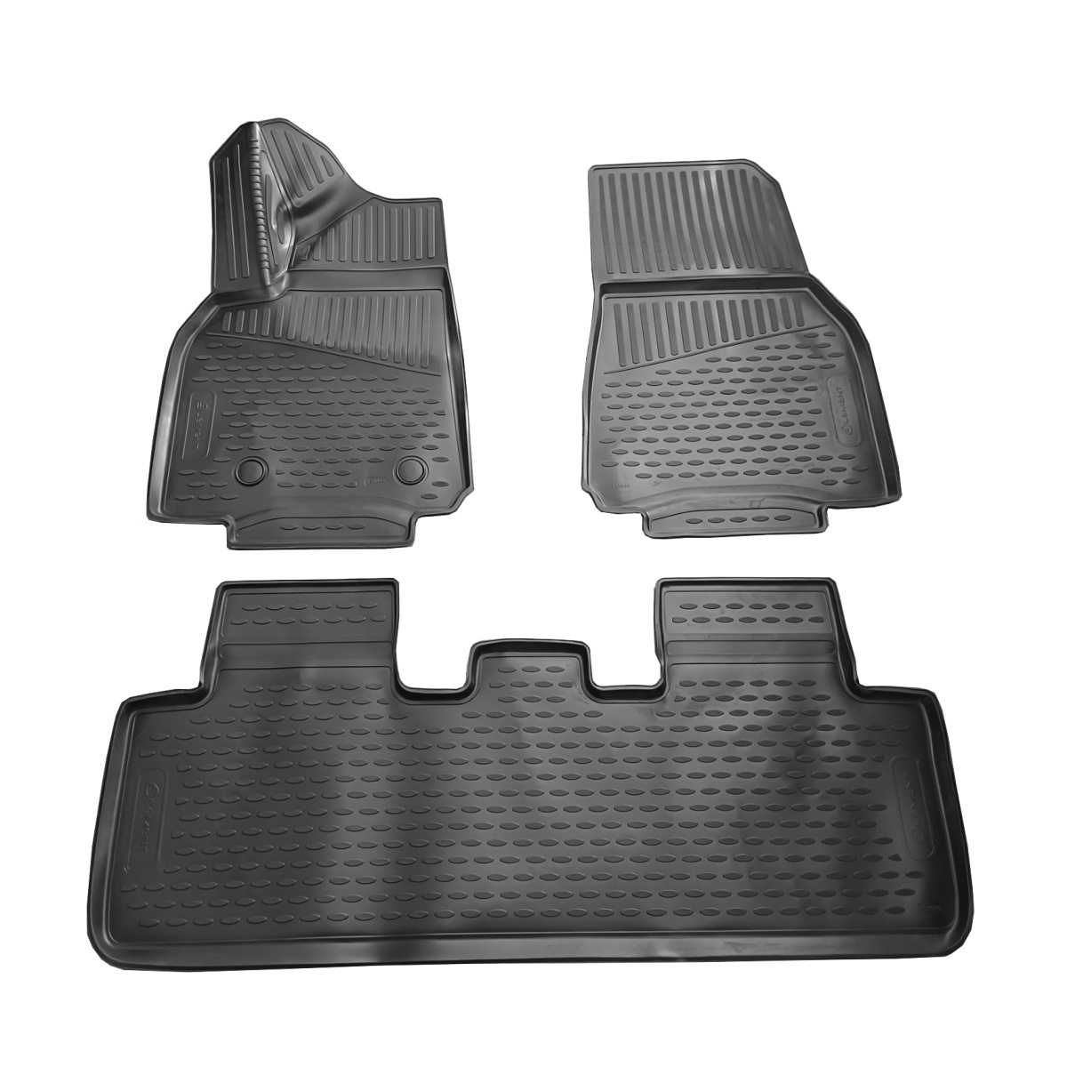 Gumové autokoberce Novline pro vůz Tesla Model Y mají zvýšený okraj (3cm) po celém obvodu a spolehlivě zabraňují pronikání nečistot do interiéru automobilu.