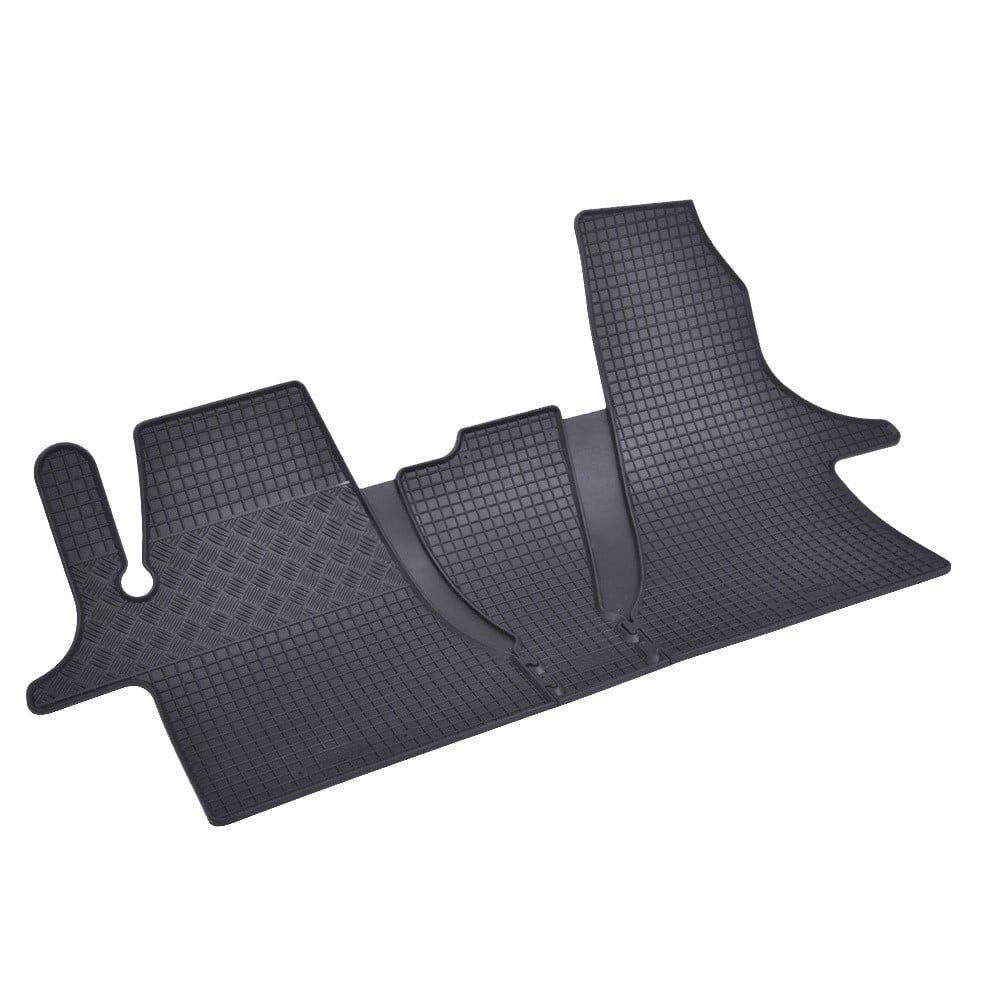 Kvalitní gumové autokoberce pro vůz VW T6.1, který se vyrábí od roku 2020. Jedná se o sadu na celý vůz. Autokoberce mají tradiční (čtverčkovaný) design, díky kterému nedochází k přelévání vody, popř. tajícího sněhu po kobercích. Okraj autokoberců je přibližně 1 cm vysoký.