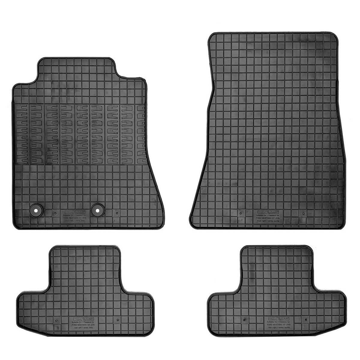 Kvalitní gumové autokoberce pro vůz Ford Mustang GT, který se vyrábí od roku 20216. Jedná se o sadu na celý vůz. Autokoberce mají tradiční (čtverčkovaný) design, díky kterému nedochází k přelévání vody, popř. tajícího sněhu po kobercích. Okraj autokoberců je přibližně 1 cm vysoký.