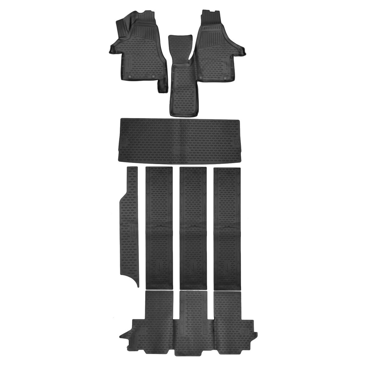 Gumové autokoberce Novline pro vůz VW Transporter T6 Multivan mají zvýšený okraj (3cm) po celém obvodu a spolehlivě zabraňují pronikání nečistot do interiéru automobilu.