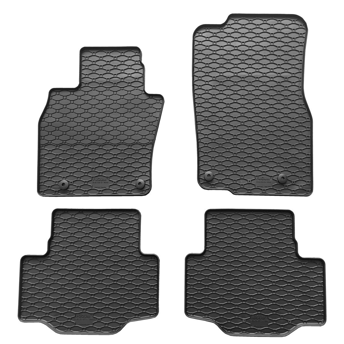 Kvalitní gumové autokoberce pro vůz Mazda CX-80 2024-. Autokoberce mají tradiční (čtverčkovaný) design, díky kterému nedochází k přelévání vody, popř. tajícího sněhu po kobercích. Okraj autokoberců je přibližně 1 cm vysoký.