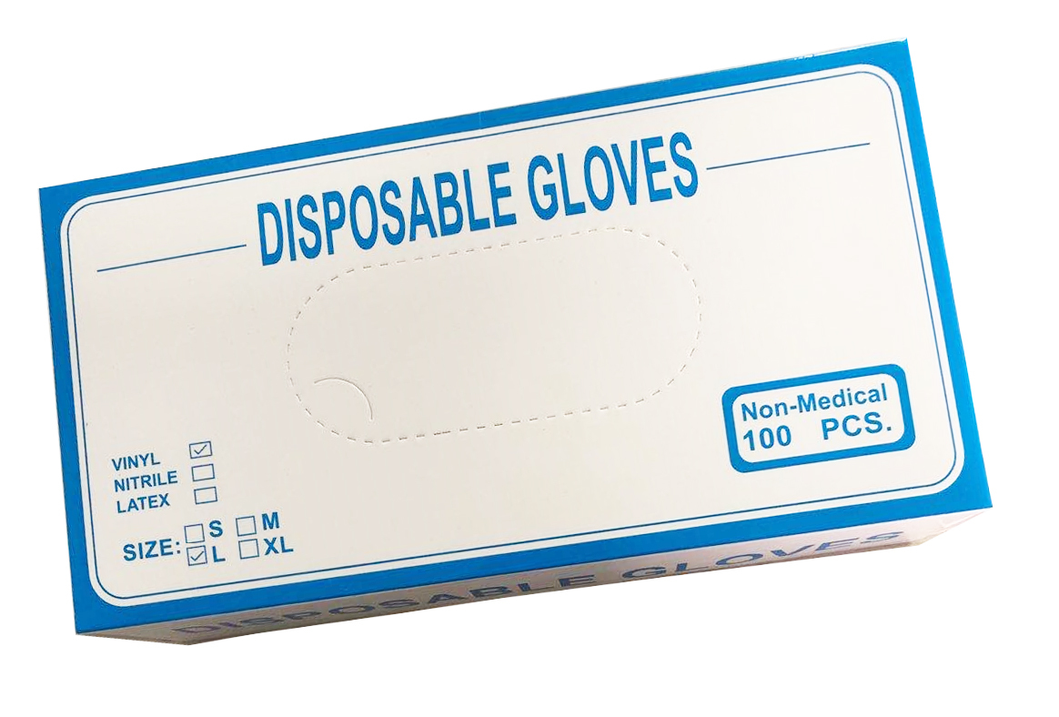 Rukavice jednorázové bezpudrové 100 ks (L); 22x11,5x6,5 cm; vinyl