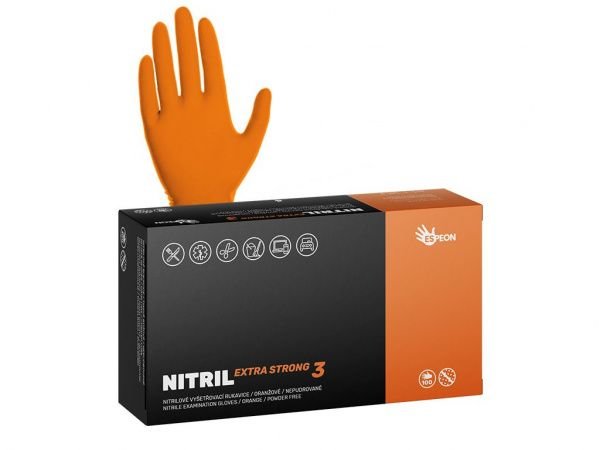 Rukavice jednorázové nepudrované NITRIL EXTRA STRONG3 oranžové, velikost XL