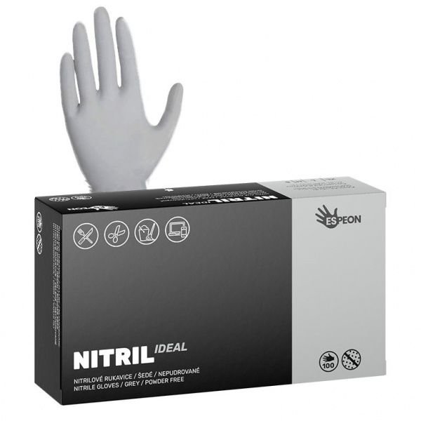Rukavice jednorázové nitrilové nepudrované IDEAL M, šedé