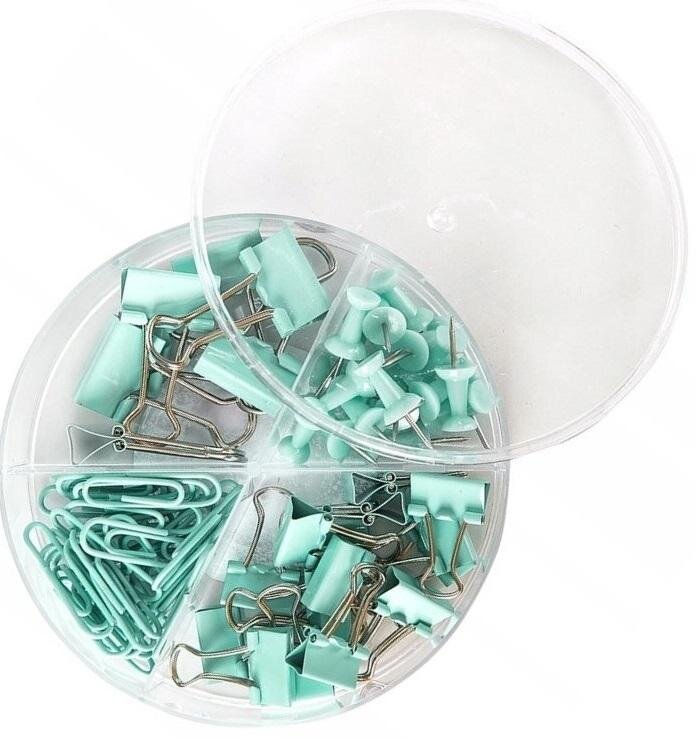 Zestaw akcesoriów biurowych w miętowym kolorze.