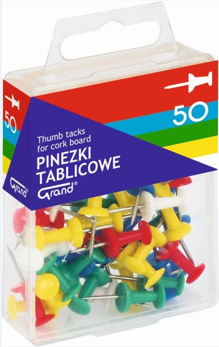 Kolorowe, do tablic korkowych. Opakowanie 50szt. číst celé