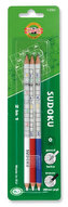 Oboustranné kulaté tužky v dřevěném plášti v kombinaci s grafitovým jádrem v gradaci 2B a pryžovým jádrem. Tužky jsou zabaleny po 3 ks do blistru v kombinaci bíle, modře a červeně leštěných. Jsou vhodné zvláště pro milovníky luštění křížovek a SUDOKU.