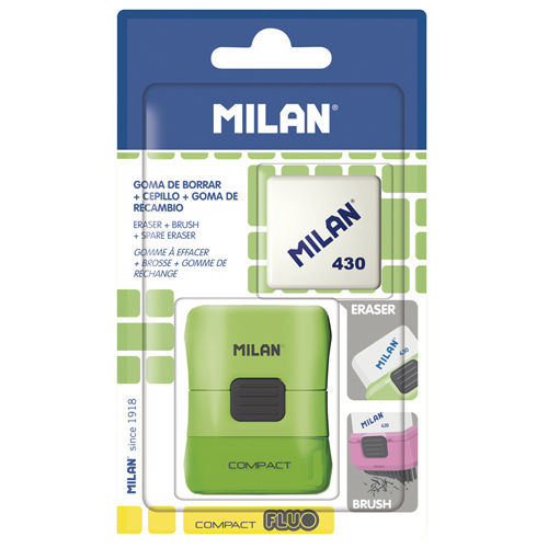 Edícia gumy a štetca COMPACT Fluo, ktoré možno použiť na odstránenie prachu z gumy. Zahŕňa náhradnú gumu. číst celé