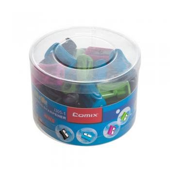 Ořezávátko 48ks Comix Mini J305-1. Pro ostré tužky a pastelky jako nikdy! Plastové ořezávátko s 1 otvorem bez odpadní nádobky v různých barvách.Vysoká pevnost ocele, trvanlivé ostří.