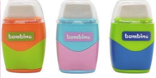 funkcjonalne połączenie temperówki i gumki do ścierania w jednymdo użytku szkolnego, przedszkolnego i domowegopodwójna temperówka na grube i cienkie ołówki lub kredki,z bezpiecznym ostrzem i pojemnikiem na ścinkibiała gumka nierozcierająca pigmentu i nieniszcząca papieru, zabezpieczona praktyczną zatyczką, chroniącą przed jej zabrudzeniemergonomiczny kształt temperówki umożliwia wygodne użytkowanie