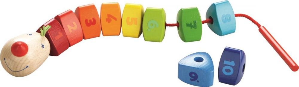 Tento navlékací drak pomáhá učit se čísla a barvy. Každý komponent má jiné číslo. Kdo je může spojit ve správném pořadí? Samozřejmě mohou být barevně navlečené za Drakova hlavou jakýmkoliv způsobem! Vhodné pro děti: od 2 let Materiál: dřevo, plast