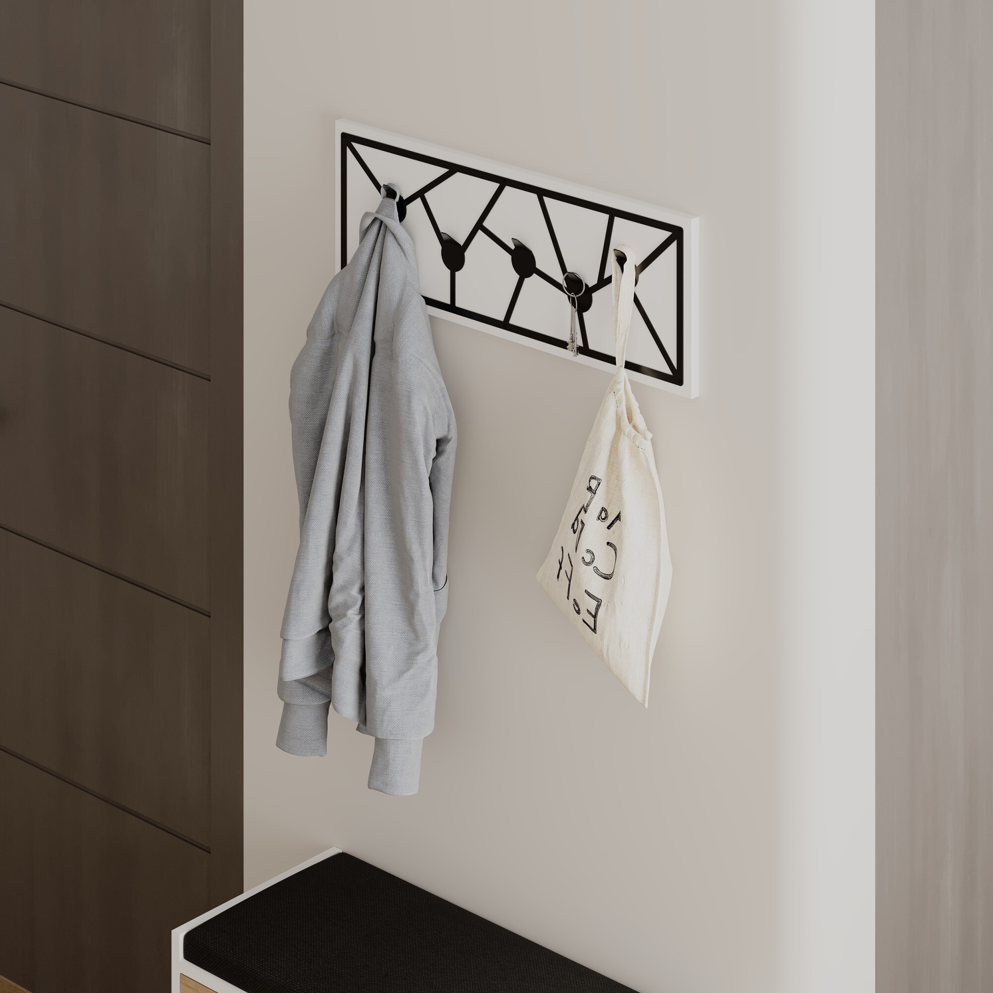 Nástěnný věšák Houseland Trace bílo-černý
