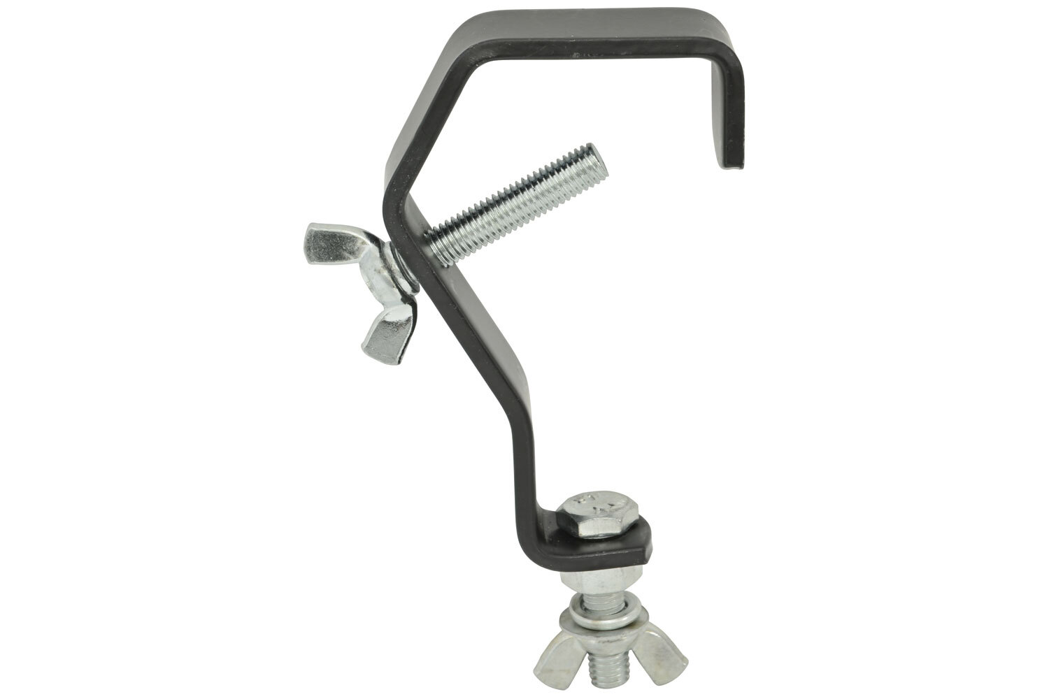 Speciální šroubovací svorka pro zavěšení světelných efektů. Univerzální použití díky profilu „G“, vhodná pro trubky s průměrem do 55 mm, maximální nosnost 20 kg. Černé barevné provedení.Max. nosnost: 20 kg