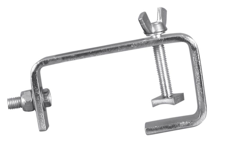 Hák pro průměr trubky 50 mm a zátěž 15 kg (max. 24 kg dle typu konstrukce). Provedení stříbrné, hák ke určený k zavěšení různých efektů na ocelovou konstrukci.
