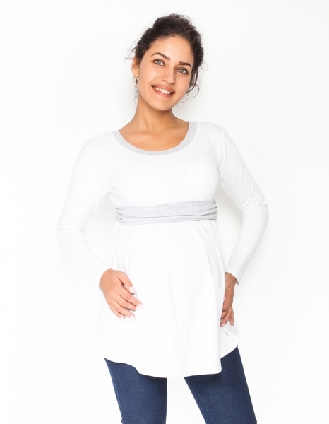 Splývavý střih halenky se krásně přizpůsobí rostoucímu bříšku všech nastávajících maminek.