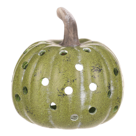 Dýně kulatá s otvory - keramika, na čajovou/LED svíčku, zelená