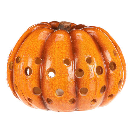Žluto-oranžová dýně z keramiky s LED osvětlením uvnitř navodí tu správnou podzimní atmosféru. Po celém obvodu jsou různě velké kulaté otvory, kterými bude světlo zevnitř krásně vycházet ven a vytvářet neodolatelný světlený efekt.