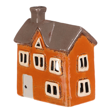 Proveďte viditelnou proměnu vašeho prostoru s tímto kouzelným keramickým domečkem v oranžové barvě, který jakoby se k vám dostal přímo z pohádkového města. Jeho malovaný vzhled vyniká sám o sobě a při bližším pohledu nabízí prostor pro vložení čajové nebo LED svíčky. Tato dekorace je vhodná pro celoroční využití, ale její světelný efekt dosahuje nejlepších výsledků za tmy. Skrze okénka pronikne do vašeho prostoru neodolatelné světlo, vytvářející okouzlující atmosféru a přinášející pohádkový nádech do každé místnosti.